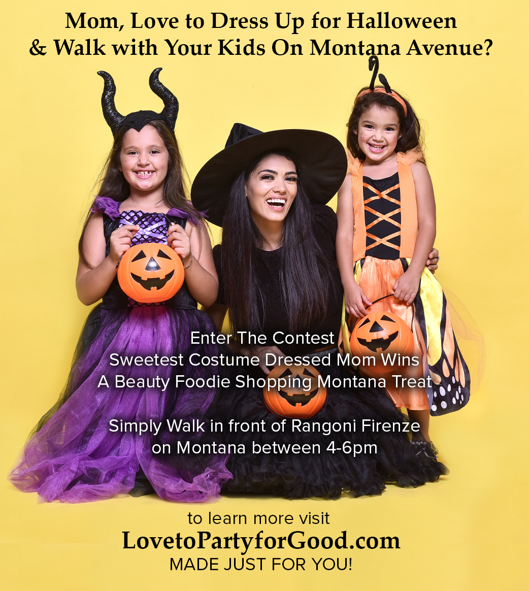 Recruiting for good is celebrating moms who dress up for Halloween and walk with kids on Montana Ave; the sweetest costume wins a beauty foodie shopping day.
